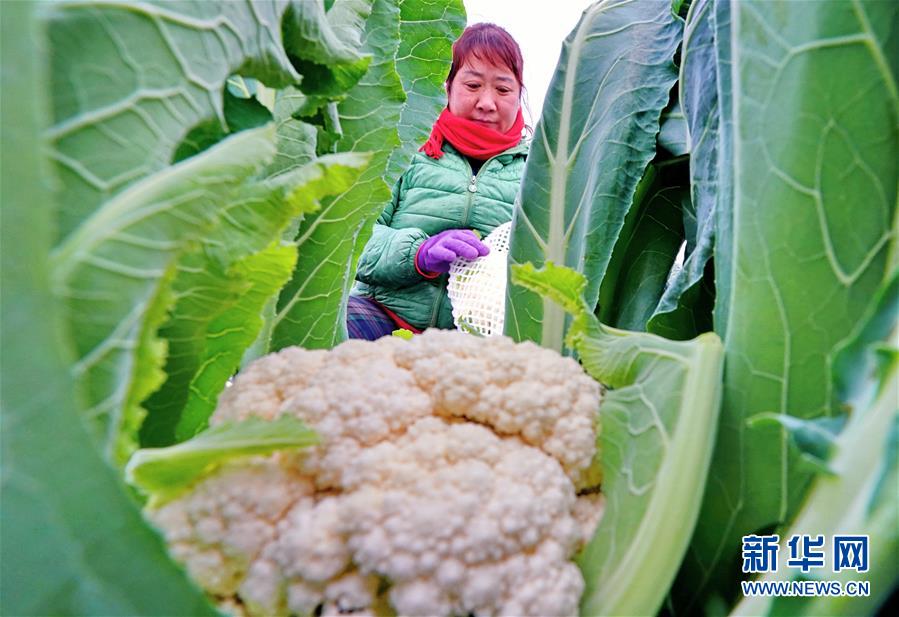 11月5日,唐山海港經(jīng)濟開發(fā)區(qū)王灘鎮(zhèn)東高各莊村的菜農(nóng)在收獲菜花。 新華社記者 楊世堯 攝