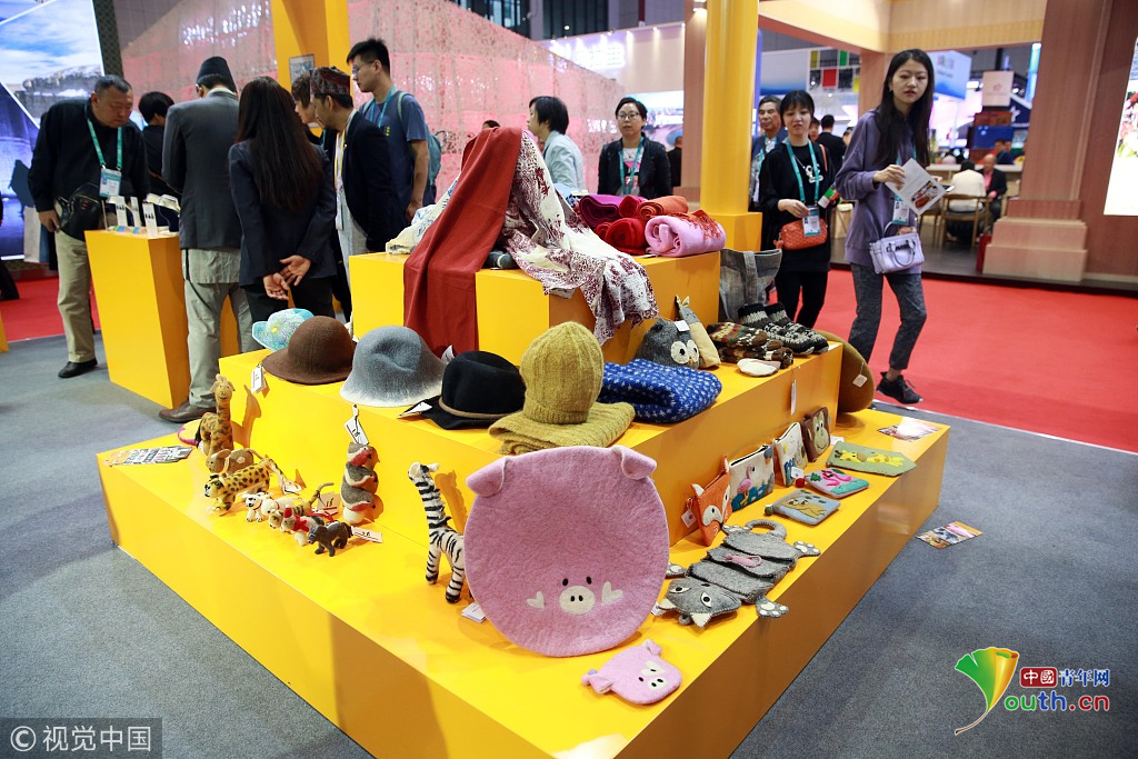 2018年11月6日,上海,首屆中國國際進口博覽會國家展上,共有82個國家、3個國際組織設立了71個展臺。尼泊爾館。視覺中國