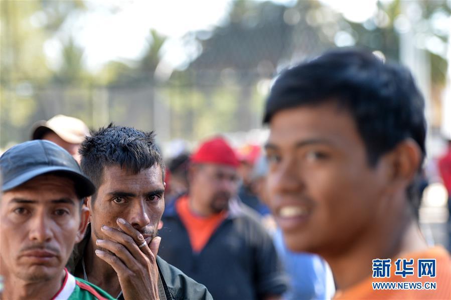 11月5日,在墨西哥首都墨西哥城,中美洲移民在臨時(shí)安置點(diǎn)外排隊(duì)。新華社記者辛悅衛(wèi) 攝