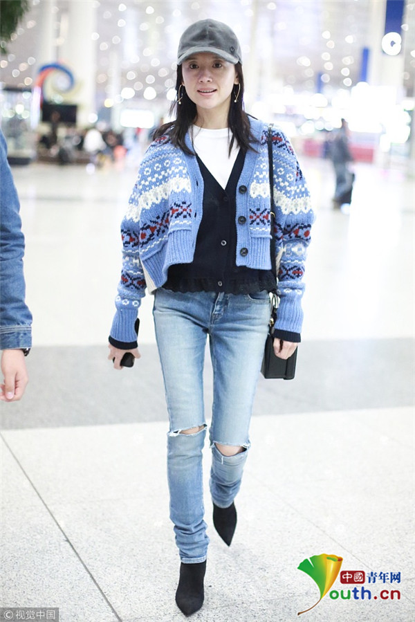 2018年11月8日,北京,“不老女神”董潔現(xiàn)身機(jī)場,雖然素面朝天依舊顏值超高,身高1米6也輕松擁有大長腿,身材比例超棒!