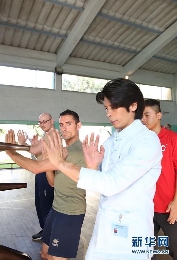 11月13日,在馬耳他首都瓦萊塔,鄭祖杰(前右)向馬耳他士兵展示詠春拳。 當(dāng)日,中國國家級(jí)非物質(zhì)文化遺產(chǎn)詠春拳代表性傳承人鄭祖杰走進(jìn)馬耳他武裝部隊(duì),向官兵展示詠春拳。這一活動(dòng)是馬耳他中國文化中心與馬耳他武術(shù)協(xié)會(huì)合辦的詠春拳系列展示活動(dòng)之一。 新華社記者 袁韻 攝