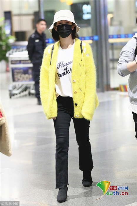 日前,楊紫現(xiàn)身長沙黃花機(jī)場,她頭戴漁夫帽的她口罩遮面,身著鮮黃針織衫相當(dāng)搶眼,一路獲粉絲跟拍。