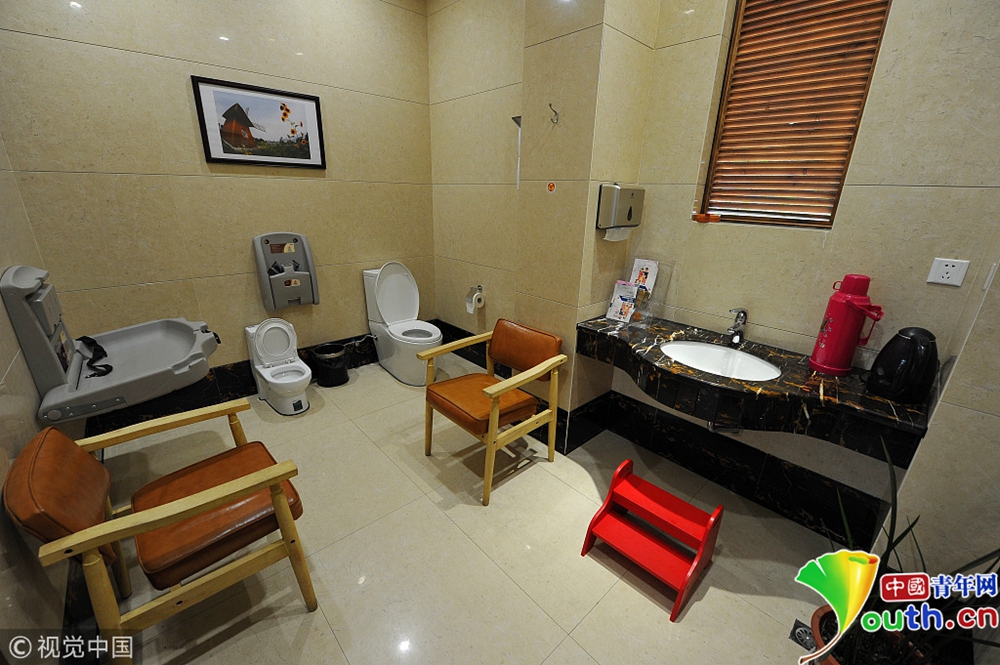 還設(shè)有第三衛(wèi)生間,是專為殘疾人、以及帶著小孩的父母們提供的一個私密空間。免費上這樣超豪華、且復(fù)古又特有文藝范兒的公廁,能讓人感受到一種如“家”般的舒適,像是進了五星級酒店似的。