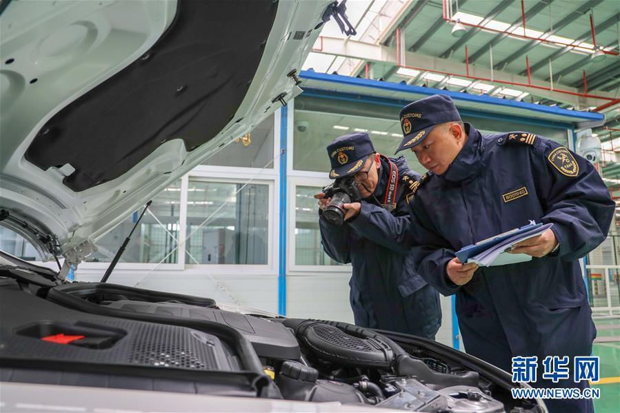 11月19日,重慶海關的工作人員在口岸車檢中心對首趟中歐班列商品車專用車運輸國際班列運輸?shù)倪M口整車進行查驗。
