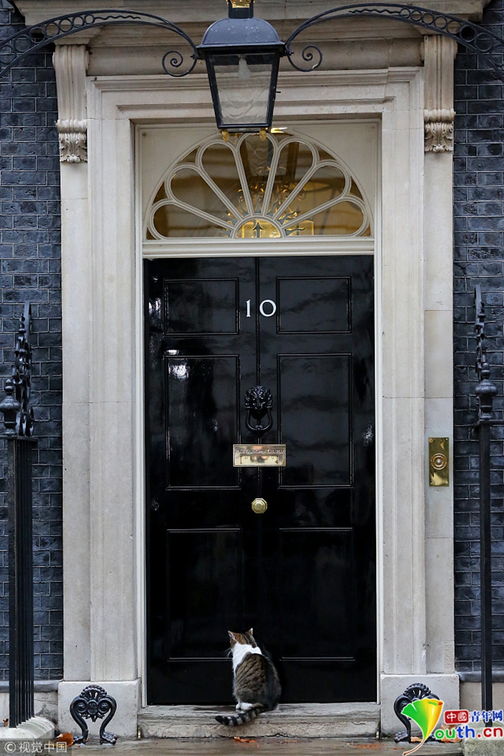 被關(guān)在門(mén)外的拉里起先“安靜且耐心地”蹲坐在唐寧街10號(hào)的黑色大門(mén)前。