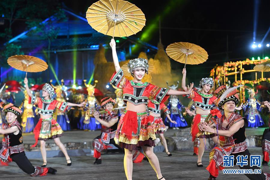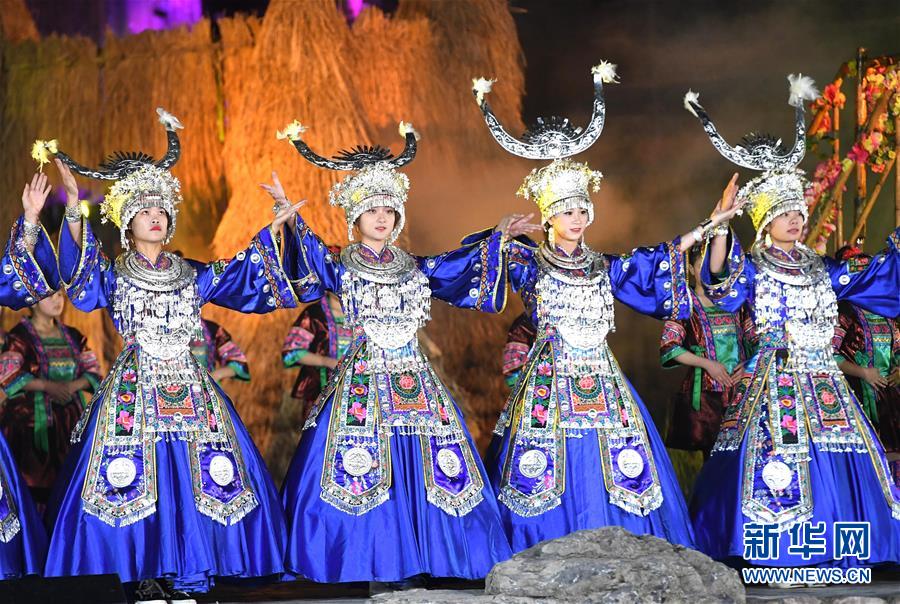 11月21日,演員表演歌舞《依依送客》。 當日,廣西柳州市第一屆旅游產業(yè)發(fā)展大會暨2018第十八屆中國·融水苗族蘆笙斗馬節(jié)開幕式晚會在融水苗族自治縣舉行。 新華社記者 周華 攝