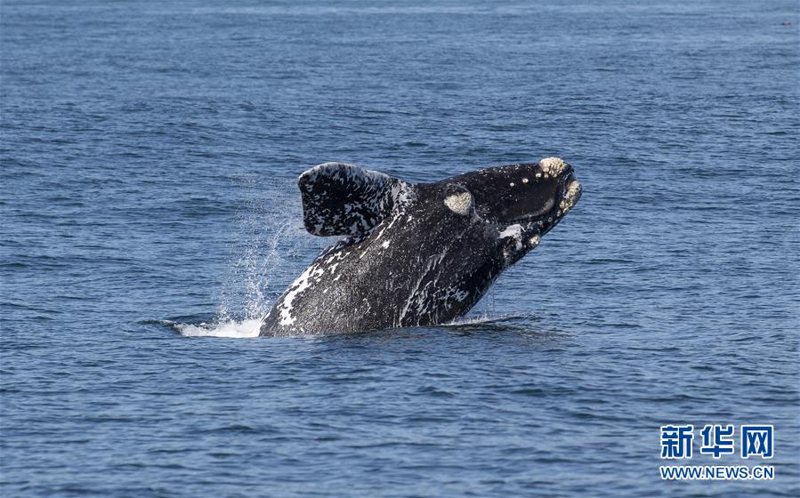 9月30日,在南非赫曼紐斯小鎮(zhèn)附近海面上,一頭南露脊鯨躍出海面。9月29日,位于開普敦以東約115公里的赫曼紐斯小鎮(zhèn)迎來2018年的鯨魚節(jié),來自世界各地的游客可乘船出海觀鯨,也可在岸邊等待鯨魚的到來。新華社記者陳誠攝