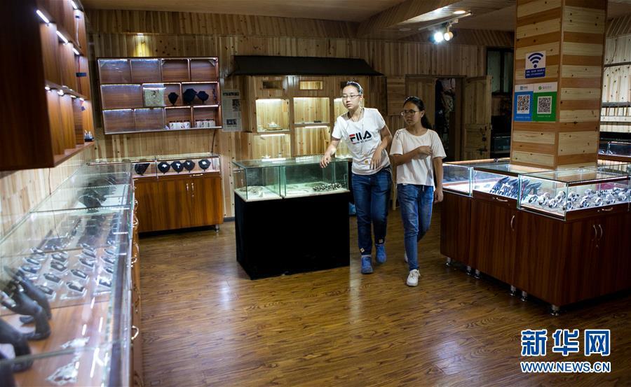 8月3日,前來體驗(yàn)銀飾制作的青少年參觀龍?zhí)柕你y飾陳列展臺(tái)。