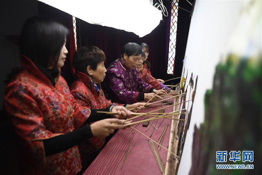 11月20日,在浙江海寧市南關(guān)廂歷史街區(qū),張坤榮(左三)在表演皮影戲。新華社記者黃宗治攝