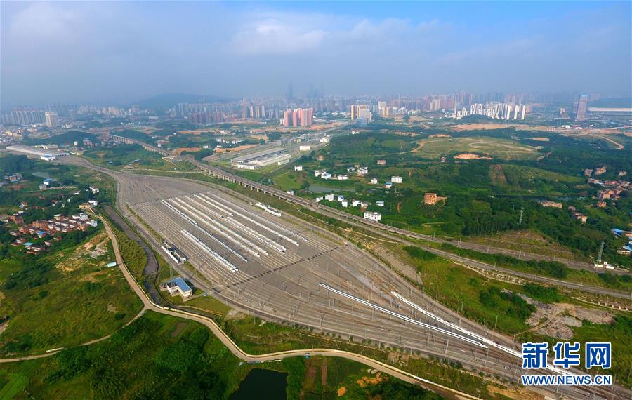 這是廣西南寧動車所內(nèi)準(zhǔn)備發(fā)往各地的動車組列車(6月18日無人機(jī)拍攝)。 廣西壯族自治區(qū)成立60年來,鐵路建設(shè)發(fā)生翻天覆地的變化。來自中國鐵路南寧局集團(tuán)有限公司的數(shù)據(jù)顯示,1958年廣西鐵路總里程為1346.3公里,如今廣西鐵路總里程達(dá)5191公里。廣西與周邊相鄰省份間實(shí)現(xiàn)動車“公交化”開行。此外,北部灣港—重慶班列、東盟海產(chǎn)品冷鏈班列、“百色一號”果蔬專列等的開通和運(yùn)營,強(qiáng)化了鐵路供給的針對性和有效性。鐵路成為助推廣西經(jīng)濟(jì)社會快速發(fā)展的“大動脈”。 新華社記者黃孝邦攝