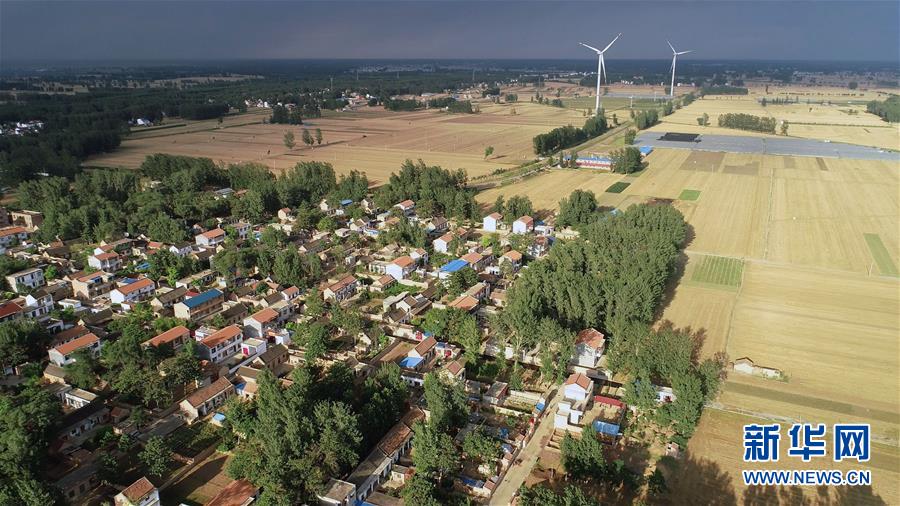 這是6月20日無人機拍攝的河南蘭考縣東壩頭鄉(xiāng)張莊村周圍的麥田和風機。新華社記者馮大鵬攝