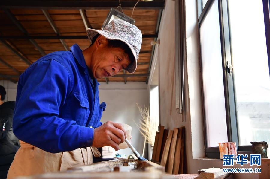 在河南蘭考縣固陽鎮(zhèn)徐場村墨武琴坊,一位工人在生產(chǎn)車間里制作古琴(11月9日攝)。新華社記者馮大鵬攝