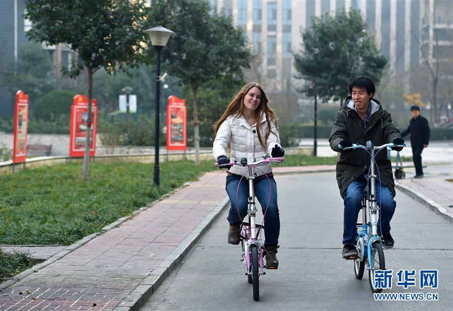 11月24日,艾米莉和愛(ài)人郭了達(dá)一起騎車(chē)出行。 新華社發(fā)(張曉峰 攝)