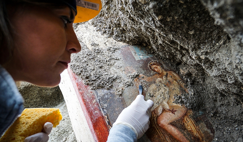 龐貝古城發(fā)現(xiàn)珍貴壁畫“麗達(dá)與天鵝” ...