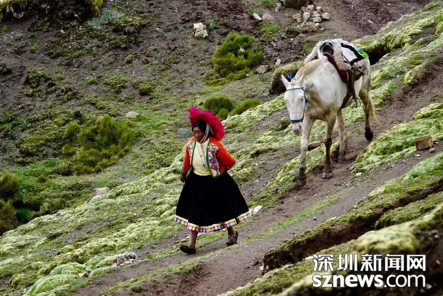 深圳新聞網(wǎng)訊 秘魯彩虹山所在的山坳里,有一個(gè)西班牙語名叫Cusipata chillahuani的少數(shù)民族,他們世世代代生活于深山之中,環(huán)境嚴(yán)酷。他們吃苦耐勞,原來大多從事畜牧業(yè),飼養(yǎng)羊駝、綿羊和馬,鮮與外界接觸。李仁奇攝