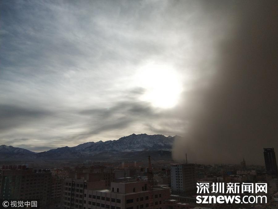 2018年11月25日,甘肅張掖,當(dāng)?shù)赝辉馍硥m暴襲擊。