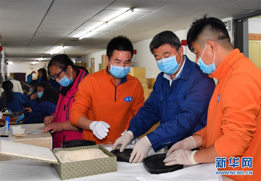 工作人員在孔府文物檔案館內(nèi)仔細(xì)包裝即將運(yùn)輸?shù)奈奈铮?1月12日攝)。 11月26日,耗時(shí)5年建成的孔子博物館在孔子故里山東曲阜開(kāi)館試運(yùn)行,首批2000多件文物搬出孔府文物檔案館,入住孔子博物館,今后將有69萬(wàn)多件孔府文物逐批“喬遷新居”。 新華社記者 朱崢 攝