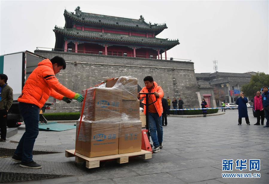 搬遷文物被護(hù)送出孔府文物檔案館(11月20日攝)。 11月26日,耗時(shí)5年建成的孔子博物館在孔子故里山東曲阜開(kāi)館試運(yùn)行,首批2000多件文物搬出孔府文物檔案館,入住孔子博物館,今后將有69萬(wàn)多件孔府文物逐批“喬遷新居”。 新華社記者 朱崢 攝