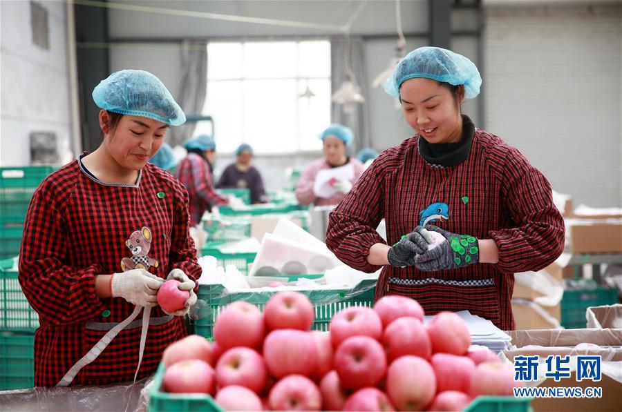 11月26日,河北省內(nèi)丘縣一扶貧龍頭企業(yè)的員工在將蘋果裝箱。 近年來,河北省內(nèi)丘縣不斷推進(jìn)產(chǎn)業(yè)扶貧,探索“龍頭企業(yè)+貧困戶”利益鏈接機(jī)制,通過扶貧資金入股、進(jìn)廠打工等方式,提高貧困戶的產(chǎn)業(yè)參與度和受益度,帶動1300余戶貧困戶實(shí)現(xiàn)增收。 新華社記者 牟宇 攝