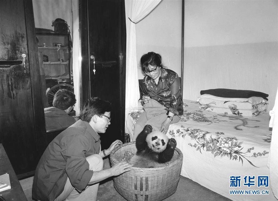 新華社記者金勖琪1984年拍攝的四川平武縣林業(yè)局的助理工程師鐘肇敏(左)一家把一頭受病餓威脅的熊貓幼仔“龍龍”收留在家里精心喂養(yǎng)。大熊貓,古老的物種,世界級“萌寵”。有一位84歲的老人,四十年前曾身挎相機與熊貓親密接觸六年多,公開發(fā)表了一千多張熊貓照片,把熊貓介紹給全球的讀者,被國內外的朋友親切地稱為“熊貓小姐”。她就是金勖琪,新華社第一代熊貓攝影師。新華社記者 張超群 攝