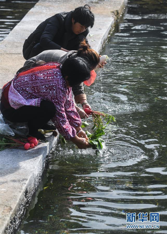 11月28日,月明村的村民在長(zhǎng)豐澗溪水邊洗菜淘米。近年來通過實(shí)施河長(zhǎng)制和水環(huán)境整治,長(zhǎng)興縣夾浦鎮(zhèn)月明村對(duì)長(zhǎng)豐澗進(jìn)行了清淤,對(duì)河兩岸綠化進(jìn)行了補(bǔ)植,修筑堰壩、蓄水引魚,兩岸種植花草,開辟河灘公園,實(shí)現(xiàn)了長(zhǎng)豐澗景美、岸綠、水清、河暢的目標(biāo)。 新華社記者 徐昱 攝