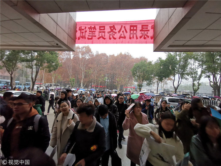 2018年12月2日,湖北武漢一公務(wù)員考點,密密麻麻的考生進(jìn)向考場。當(dāng)日,2019年度中央機(jī)關(guān)及其直屬機(jī)構(gòu)公務(wù)員招考筆試開考。楚林/視覺中國