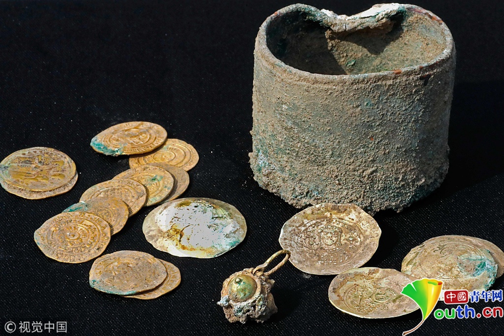 當?shù)貢r間2018年12月3日,以色列凱撒利亞,以色列地中海小鎮(zhèn)凱撒利亞發(fā)掘出24枚古代稀有金幣。
