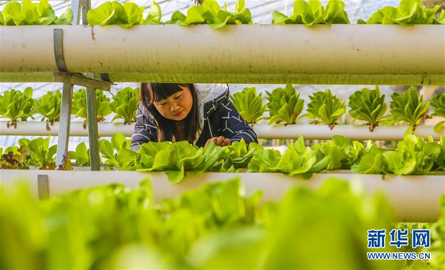 12月3日,工作人員在大廠回族自治縣一家農業(yè)園打理無土栽培的蔬菜。