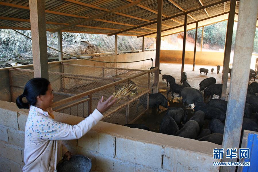 12月3日,在云南省瀾滄拉祜族自治縣南嶺鄉(xiāng)黃回村,查山種養(yǎng)農(nóng)民專(zhuān)業(yè)合作社村民在投喂豬飼料。 新華社記者杜涓涓攝