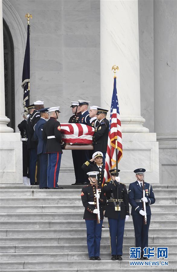12月3日,在美國首都華盛頓,美國前總統(tǒng)喬治·赫伯特·沃克·布什(老布什)的靈柩抵達(dá)國會(huì)大廈。