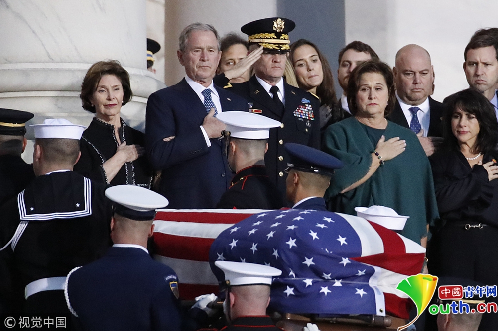美國(guó)第41任總統(tǒng)喬治·赫伯特·沃克·布什(老布什)的靈柩從他的家鄉(xiāng)休斯頓運(yùn)抵首都華盛頓市郊,他的遺體將從當(dāng)天晚上開(kāi)始放于國(guó)會(huì)圓形大廳,供民眾瞻仰。