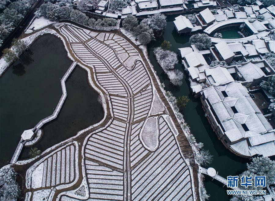 12月9日,空中俯瞰被白雪覆蓋的烏鎮(zhèn)景區(qū)(無人機(jī)拍攝)。 受冷空氣影響,浙江省桐鄉(xiāng)市迎來大范圍降雪,千年古鎮(zhèn)烏鎮(zhèn)被厚厚的白雪覆蓋。小橋流水、白墻黑瓦的江南水鄉(xiāng)古鎮(zhèn),呈現(xiàn)出冬日雪鄉(xiāng)的獨特韻味,吸引各地游客前來觀賞。 新華社記者 徐昱 攝
