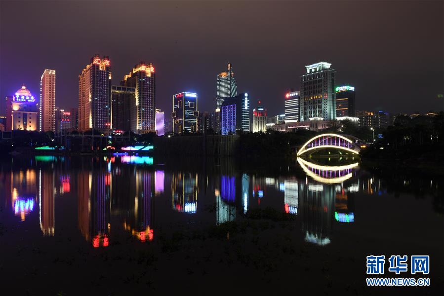 廣西南寧市民歌湖周邊建筑倒映在水面上(12月10日攝)。 新華社記者 陸波岸 攝