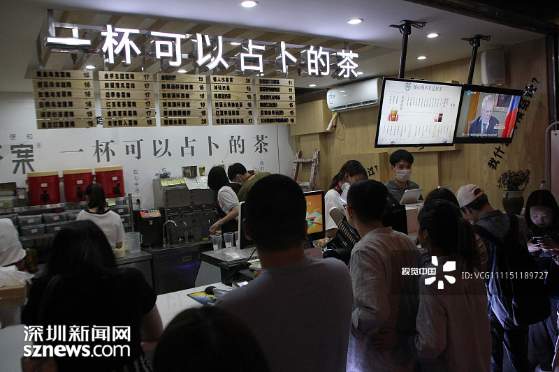 2018年4月21日,重慶,萬達(dá)廣場(chǎng)附近有一家新開業(yè)的網(wǎng)紅答案茶的冷飲店,這家答案茶冷飲店人氣異?;鸨T前已排起了兩條“長(zhǎng)龍”。 |