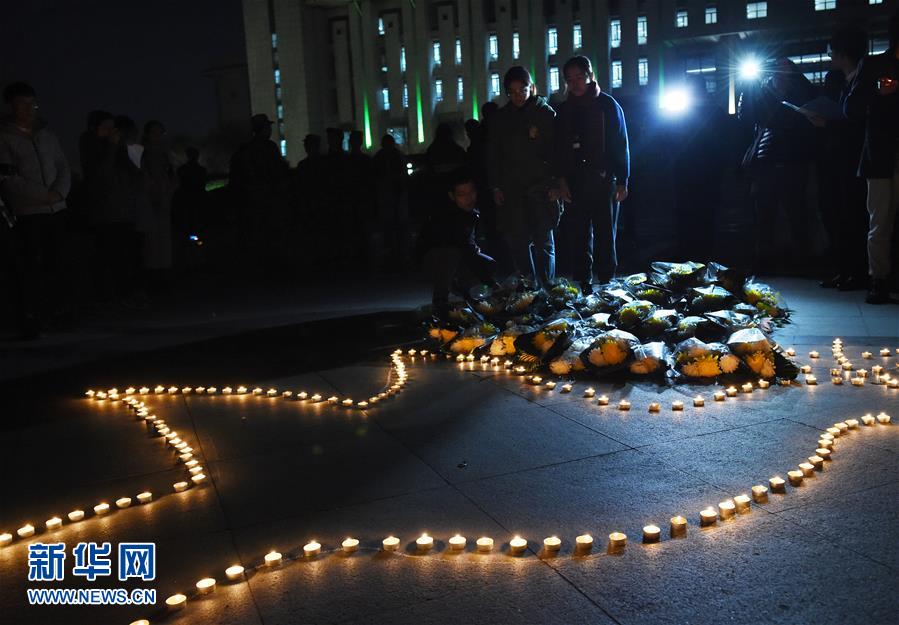 12月12日,學(xué)生在“燭光祭”活動(dòng)現(xiàn)場(chǎng)獻(xiàn)花。 當(dāng)晚,南京東南大學(xué)學(xué)生在校園舉行“燭光祭”活動(dòng),悼念南京大屠殺遇難同胞。學(xué)生們點(diǎn)燃白燭,獻(xiàn)花默哀,表達(dá)哀思。 新華社記者 孫參 攝