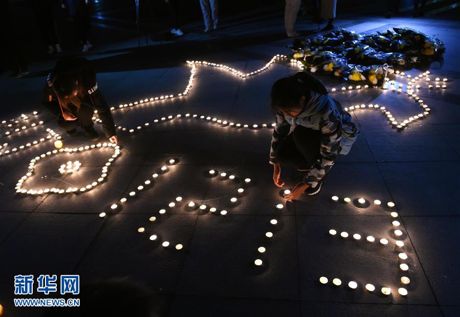 12月12日,學生將組成紀念圖案的白燭擺放整齊。 當晚,南京東南大學學生在校園舉行“燭光祭”活動,悼念南京大屠殺遇難同胞。學生們點燃白燭,獻花默哀,表達哀思。 新華社記者 孫參 攝