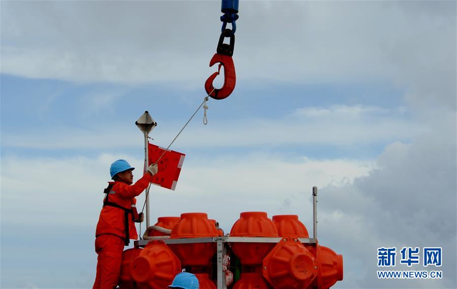 考察隊(duì)員對(duì)“彩虹魚(yú)”著陸器進(jìn)行掛鉤作業(yè)(12月10日攝)。 由上海海洋大學(xué)和西湖大學(xué)聯(lián)合組成的“彩虹魚(yú)”科考團(tuán)隊(duì),12月11日在全球最深的海溝——馬里亞納海溝成功完成兩臺(tái)“彩虹魚(yú)”第二代著陸器的萬(wàn)米級(jí)海試,深度分別為10918米和10899米。 新華社記者 張建松 攝