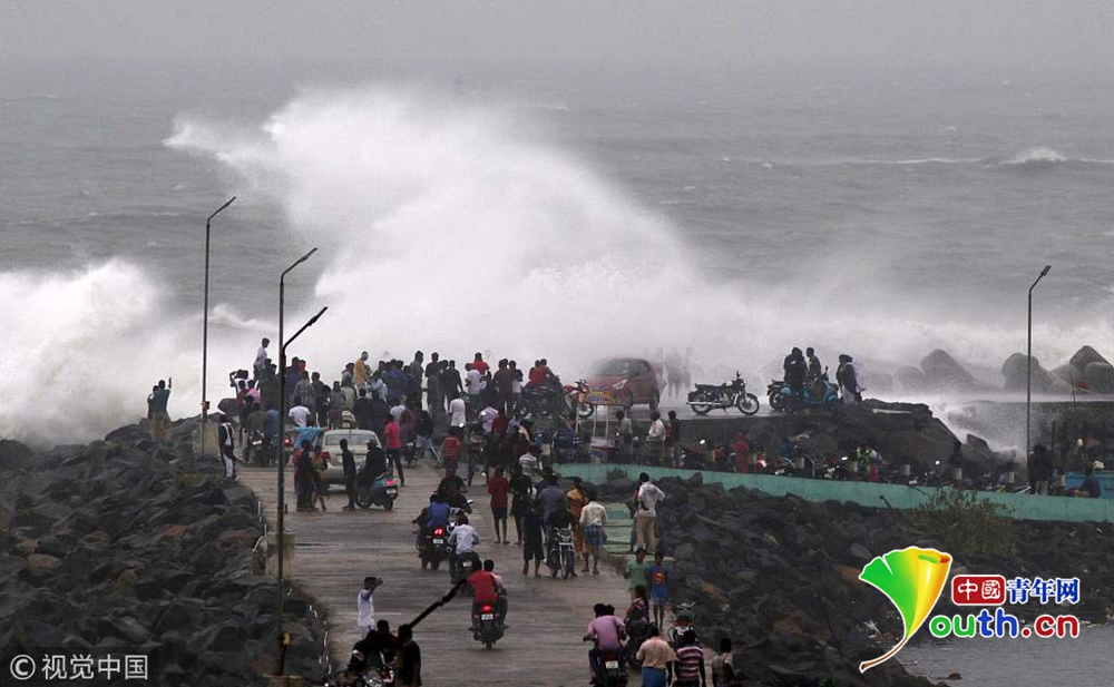 當(dāng)?shù)貢r(shí)間2018年12月16日,印度欽奈,颶風(fēng)“佩太”正向印度東海岸逼近,引發(fā)狂風(fēng)巨浪。