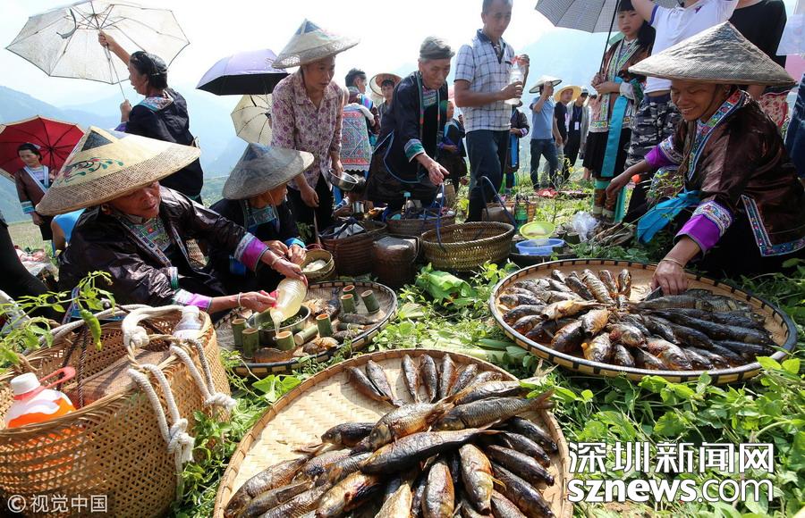 2018年11月19日,侗族同胞在參加貴州省從江縣慶云鎮(zhèn)“凍魚(yú)節(jié)”祭薩儀式。 據(jù)了解,“凍魚(yú)節(jié)”是當(dāng)?shù)亍笆稀倍弊逋赜械募漓雮鹘y(tǒng)節(jié)日,定在每年農(nóng)歷的10月12日,是人們紀(jì)念祖先遷徙而舉辦的規(guī)模盛大的節(jié)日,至今已有500多年的歷史。節(jié)日期間,主人邀請(qǐng)親友聚餐、參與慶?;顒?dòng),共享豐收喜悅。