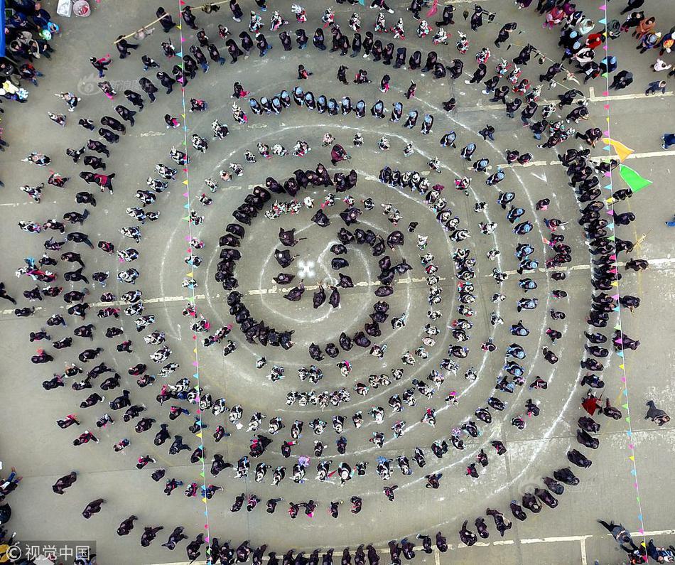 11月20日報道,2018年11月19日,侗族同胞在參加貴州省從江縣慶云鎮(zhèn)“凍魚節(jié)”踩歌堂。(無人機(jī)拍攝)2018年11月19日,貴州省從江縣慶云鎮(zhèn)境內(nèi)的石姓侗族同胞迎來傳統(tǒng)一年一度的“凍魚節(jié)”,當(dāng)?shù)囟弊逋碇?jié)日盛裝舉行祭薩、踩歌堂、賽侗歌,慶祝豐收,祈福來年風(fēng)調(diào)雨順,五谷豐登。