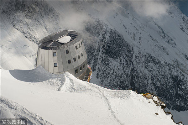 2012年8月6日消息(具體拍攝時(shí)間不詳),法國圣熱爾維,一座坐落在阿爾卑斯山脈上海拔3835米的旅館近日落成,旅館目前處于試運(yùn)行狀態(tài)直到8月底向公眾開放。這座旅館共有120個(gè)床位,達(dá)到了高環(huán)境質(zhì)量標(biāo)準(zhǔn)。