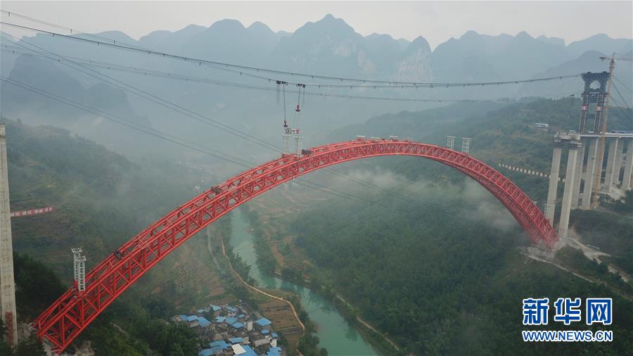 9月12日使用無人機(jī)拍攝的大小井特大橋。 目前,橫跨在貴州省羅甸縣大井河上的大小井特大橋建設(shè)進(jìn)入沖刺階段。大小井特大橋全長(zhǎng)1.5公里,主跨450米,是世界最大跨徑上承式鋼管混凝土拱橋。據(jù)了解,該橋是平塘至羅甸高速公路關(guān)鍵性工程,對(duì)打通貴州“斷頭路”,助推滇黔桂石漠化片區(qū)脫貧攻堅(jiān)具有重要意義。 新華社記者劉續(xù)攝
