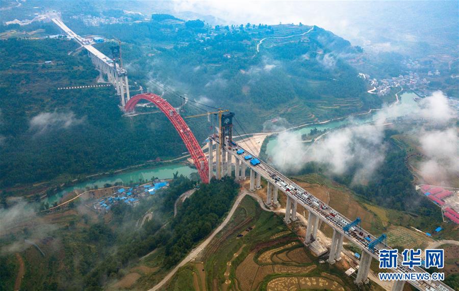 9月28日拍攝的川藏鐵路拉林段重點(diǎn)標(biāo)志性工程藏木特大橋。 當(dāng)日,隨著最后一節(jié)鋼管拱的對(duì)位和鎖定完畢,川藏鐵路拉林段藏木特大橋成功合龍,標(biāo)志著大橋主體結(jié)構(gòu)施工取得了關(guān)鍵性勝利。藏木特大橋由中國(guó)中鐵廣州局集團(tuán)承建,拱高112米,橋橫跨雅魯藏布江峽谷,水深66米。 新華社記者普布扎西攝