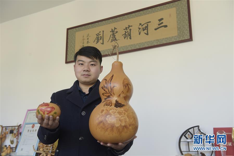 2014年,劉征從北京工商大學(xué)畢業(yè)后,曾從事過一段時(shí)間旅游產(chǎn)業(yè)方面的工作。2015年他回鄉(xiāng)創(chuàng)業(yè),致力于葫蘆烙畫創(chuàng)作和葫蘆衍生品的開發(fā)。如今,劉征不僅注冊(cè)了自己的葫蘆衍生品商標(biāo),還和同學(xué)組建團(tuán)隊(duì)共同創(chuàng)業(yè),業(yè)務(wù)內(nèi)容涵蓋從葫蘆種植、加工到銷售的全流程,著力打造個(gè)性化訂制等特色產(chǎn)品。目前,劉征和他的團(tuán)隊(duì)已銷售葫蘆創(chuàng)意產(chǎn)品超過1萬件,客戶超過1000人,部分創(chuàng)意產(chǎn)品還遠(yuǎn)銷到海外市場(chǎng)。