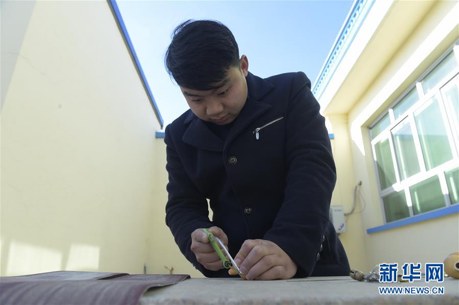 12月18日,劉征在自己的加工坊里加工葫蘆衍生品。 新華社記者 魯鵬 攝