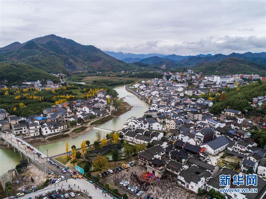 11月19日無人機航拍的河橋古鎮(zhèn)。 新華社記者 徐昱 攝