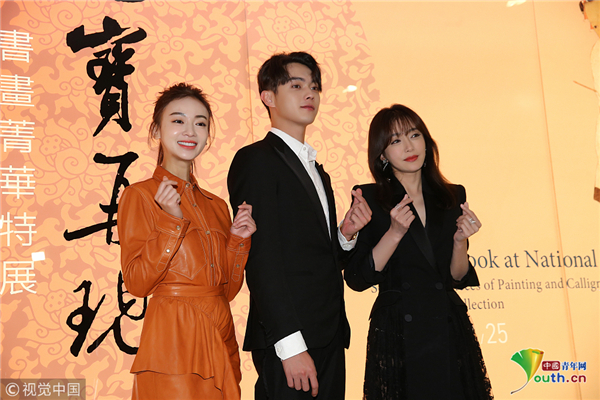 10月31日,臺(tái)北,《延禧攻略》主要演員秦嵐、吳謹(jǐn)言、許凱參觀臺(tái)北故宮。吳謹(jǐn)言梳高馬尾辮,元?dú)鉂M滿比心超甜美。秦嵐穿黑色長(zhǎng)裙氣質(zhì)非凡,親切揮手顯優(yōu)雅,可以說是“富察皇后”本人了,與吳謹(jǐn)言牽手秀友誼惹人羨慕。