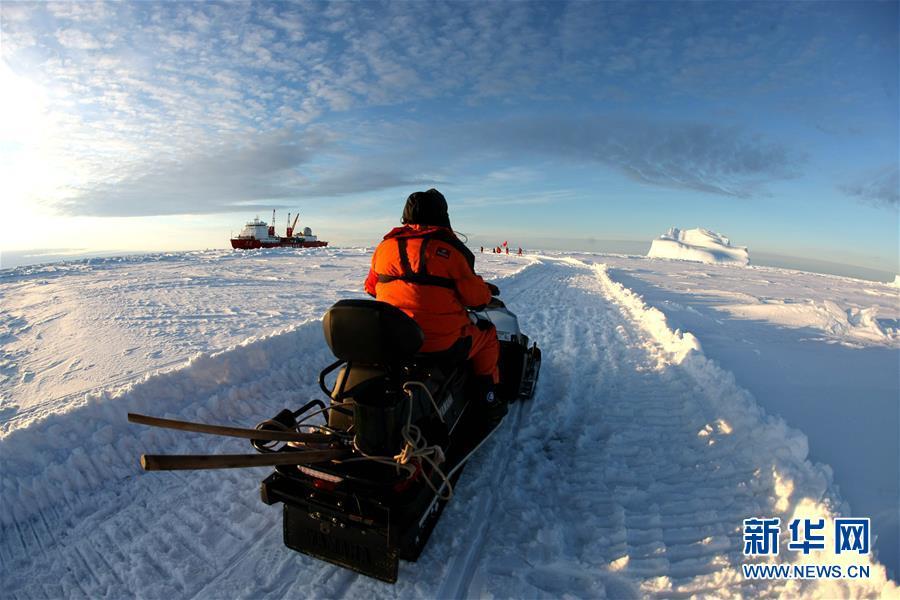 冰上運(yùn)輸之路最后一公里修通,修路小組成員返回“雪龍”號(hào)(12月1日攝)。 搭載中國(guó)第35次南極科考隊(duì)的“雪龍”號(hào)極地考察船日前到達(dá)距離中山站44公里處的陸緣冰區(qū),準(zhǔn)備迎來(lái)本次南極科考首場(chǎng)攻堅(jiān)戰(zhàn)——物資卸運(yùn)。一支探冰小組隨即展開(kāi)海冰探路,以期盡快打通從“雪龍”號(hào)到中山站的冰上運(yùn)輸線,盡早啟動(dòng)冰上運(yùn)貨。 新華社記者 劉詩(shī)平 攝