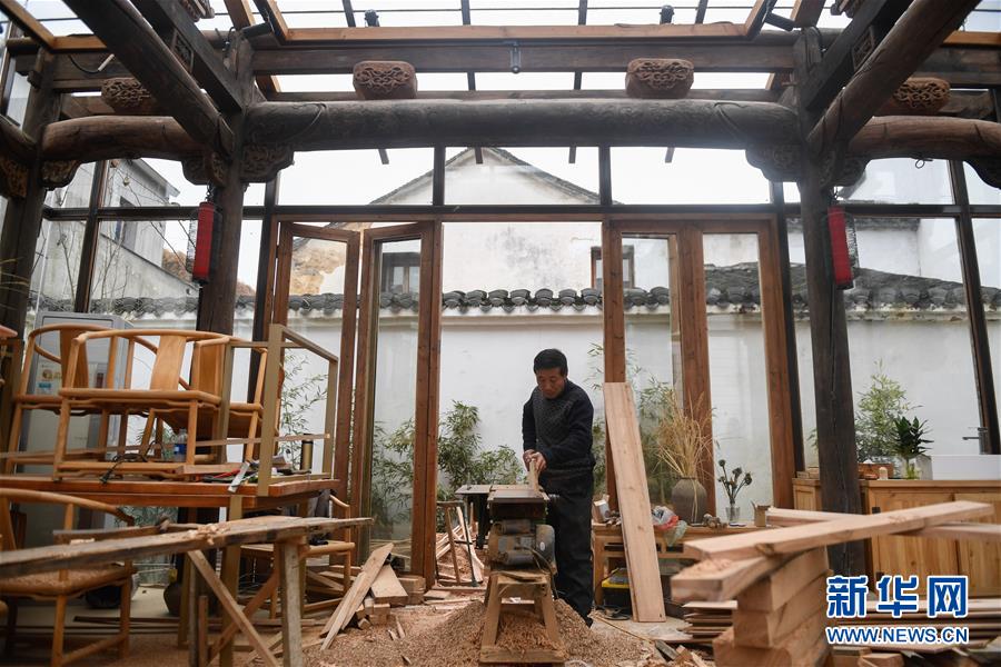 12月21日,工人在桐廬縣江南鎮(zhèn)深澳村修繕改造一間古宅。深澳村有保存完整的古建筑群落,常年吸引大批游客參觀。新華社記者黃宗治攝