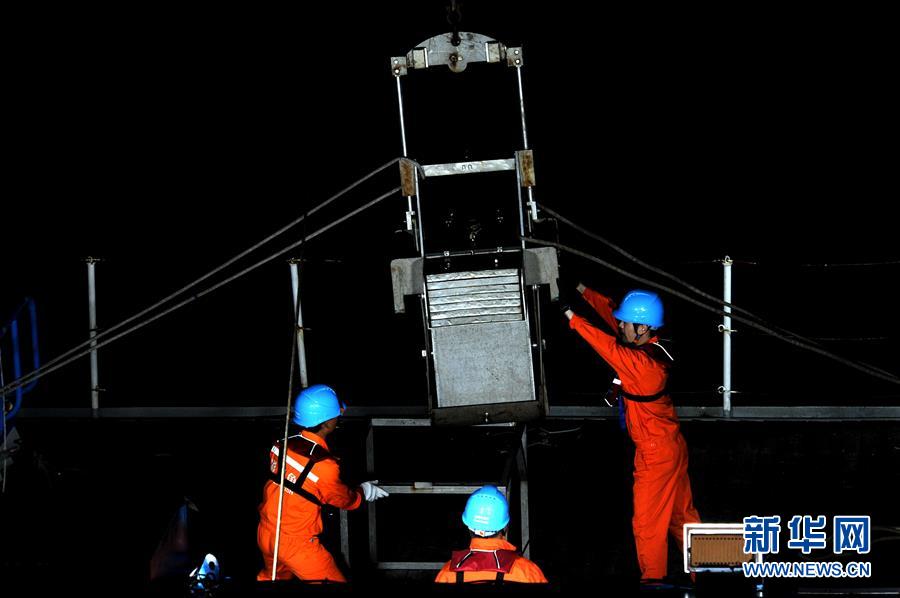 科考團(tuán)隊(duì)成員在船上回收箱式采樣器(12月20日攝)。